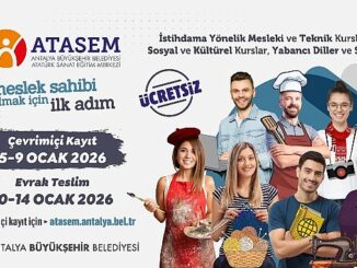 Antalya Büyükşehir Belediyesi’ne bağlı Atatürk Sanat ve Meslek Eğitimi Kurslarının (ATASEM) 2025-2026 ikinci devir kurs kayıtları 5 Ocak Pazartesi günü “atasem.antalya.bel.tr” üzerinden online başlıyor.